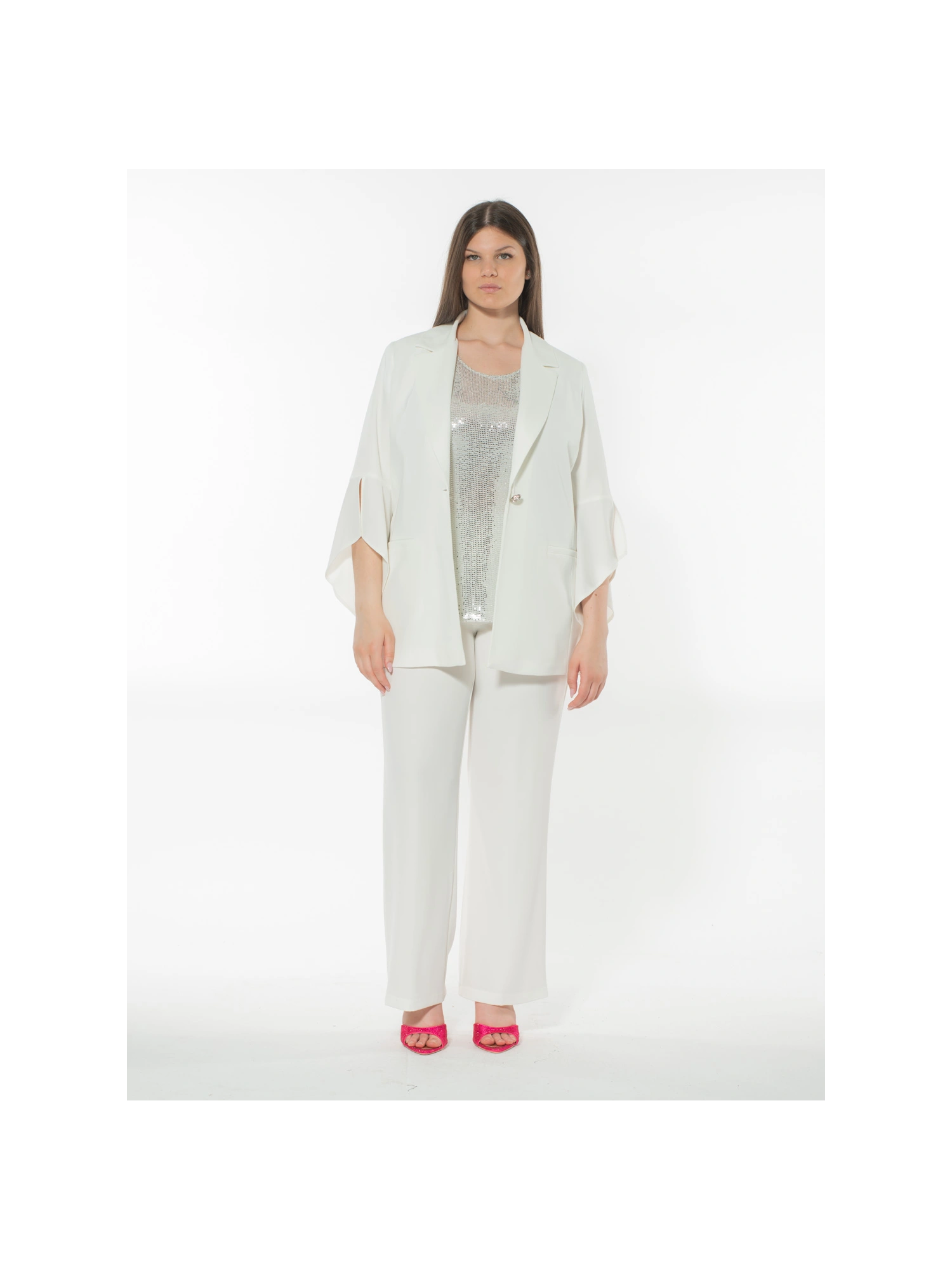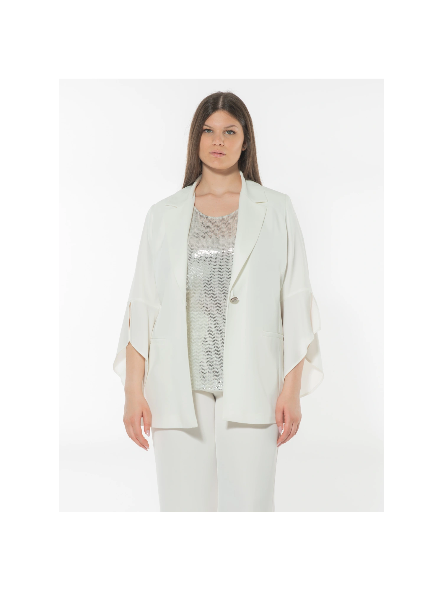Questa giacca con volant combina eleganza e modernità, rendendola una scelta perfetta per l'abbigliamento da ufficio o per occasioni speciali. Il design innovativo con volant aggiunge un tocco di originalità e femminilità, mentre la linea pulita e la tonalità neutra offrono versatilità e facile abbinamento con diversi outfit. La modella, alta 170 cm, indossa una taglia M, dimostrando come la giacca si adatti armoniosamente alla figura, enfatizzando una silhouette sofisticata e professionale. Questo capo è disponibile in diverse varianti di colore, offrendo una gamma di opzioni per personalizzare il proprio stile senza rinunciare al comfort e alla raffinatezza.