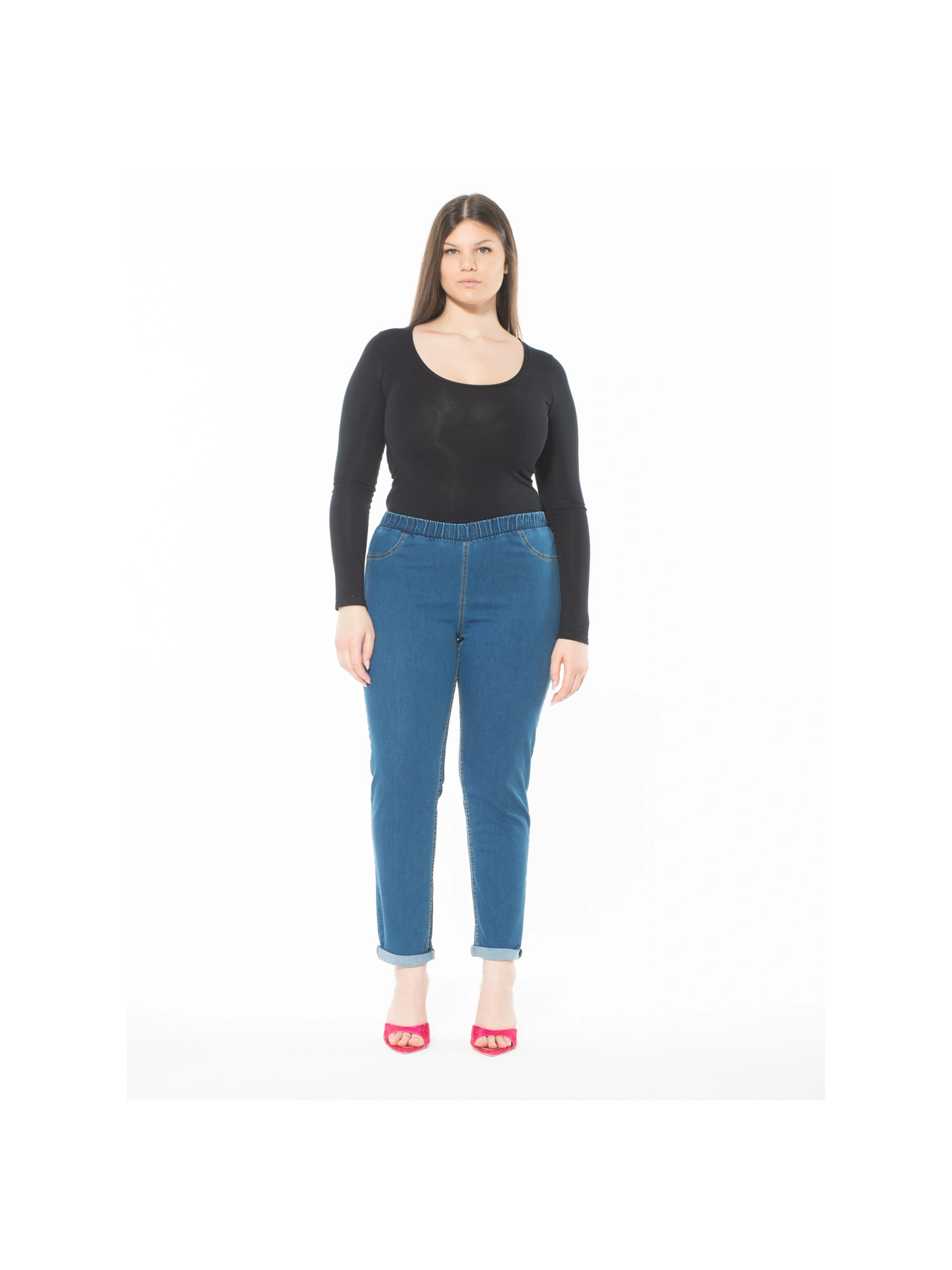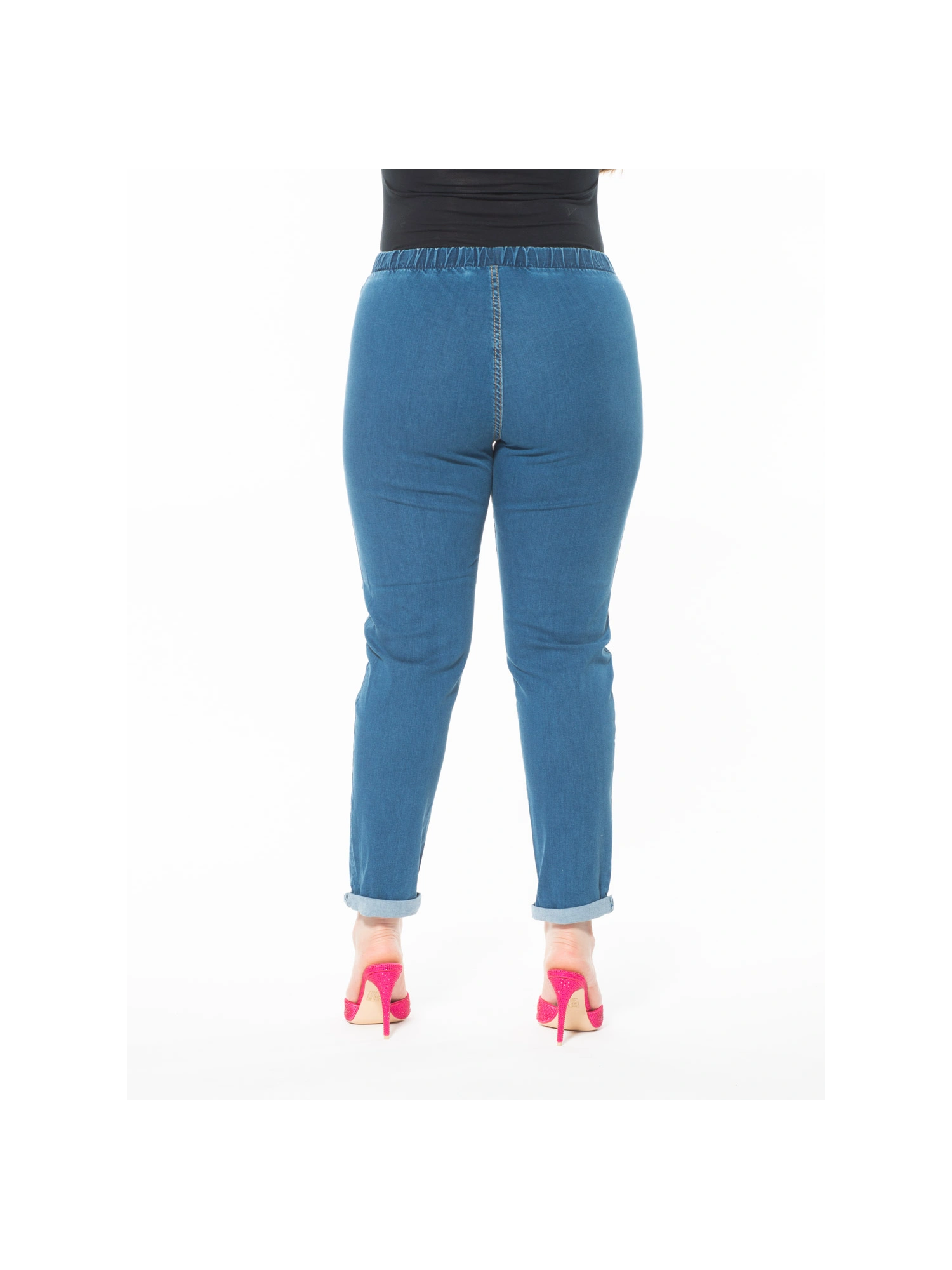 Introducing our elastic waist pants, ideal for those seeking the perfect balance between comfort and everyday style. This essential, featuring a practical elastic waistband, offers an easy fit and adapts to a variety of body types. The lightweight construction and soft finish ensure all-day comfort, making them perfect for any occasion. Details like contrast stitching and a rolled hem add a touch of casual style, making them a quick wardrobe staple. The model is 170 cm tall and wears a size 48.