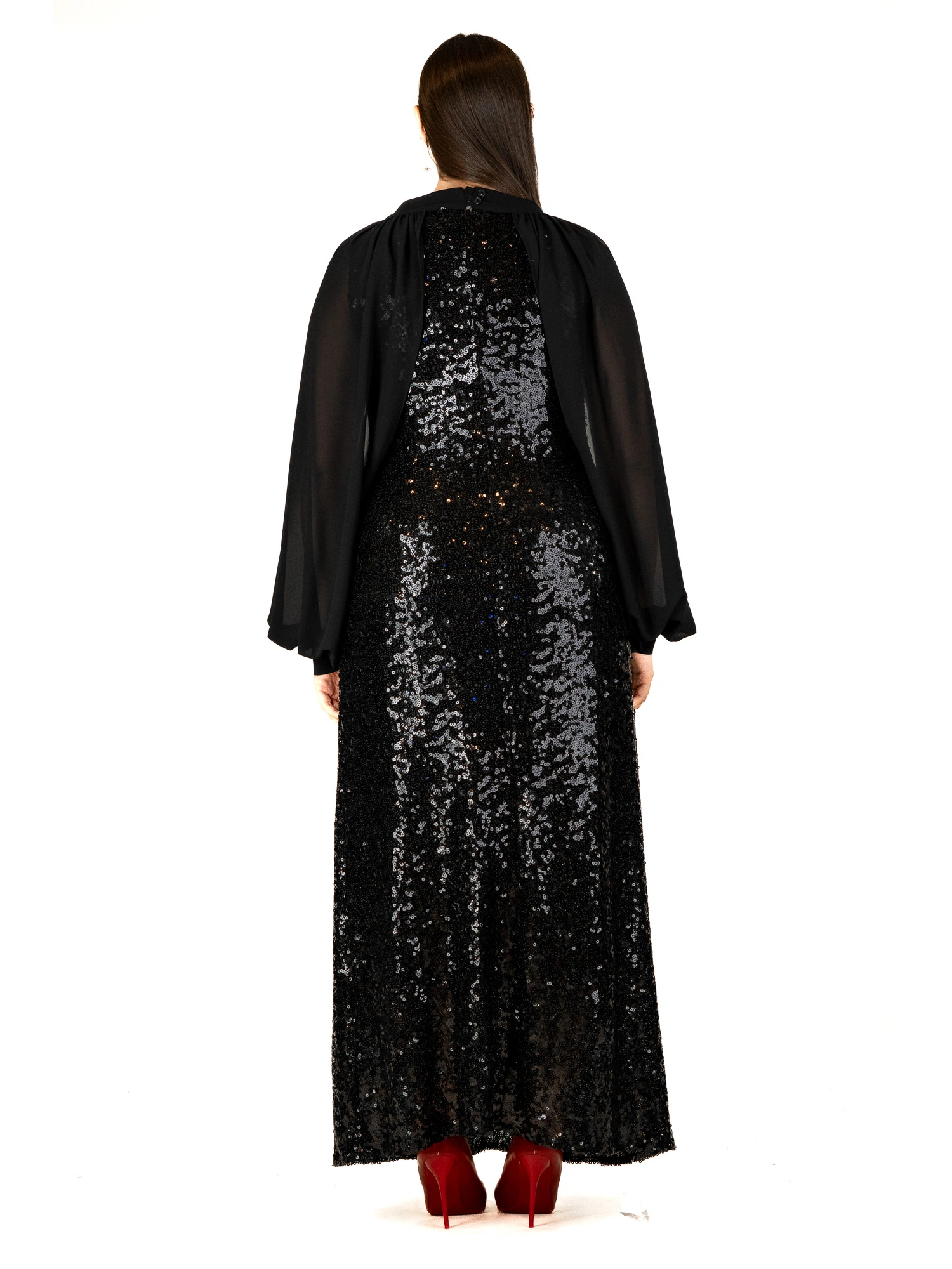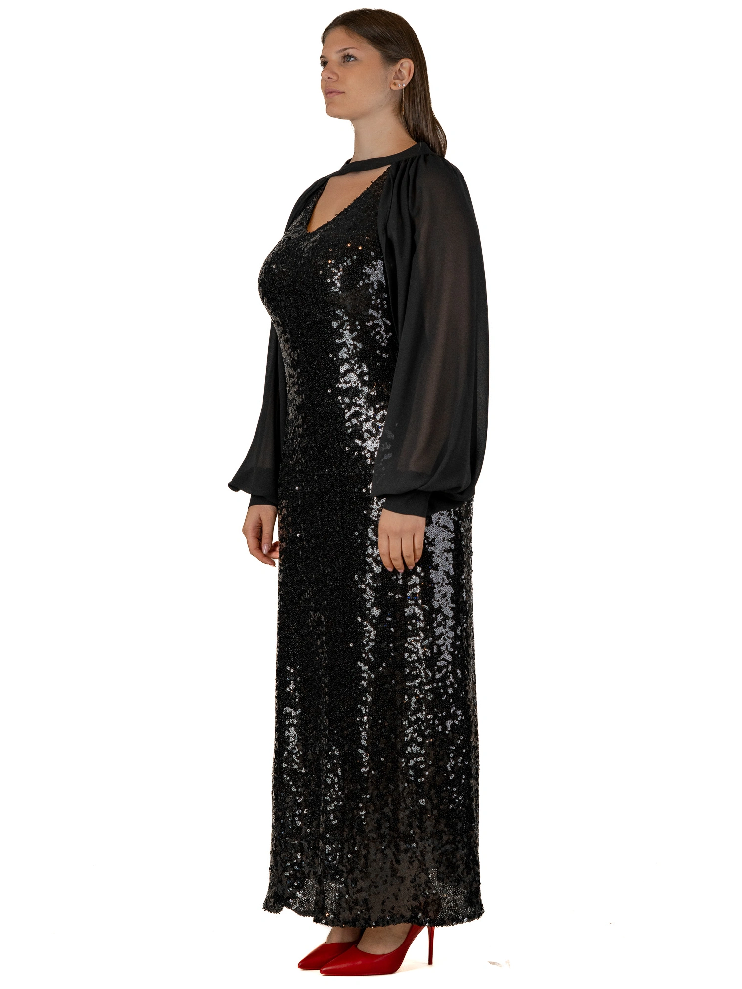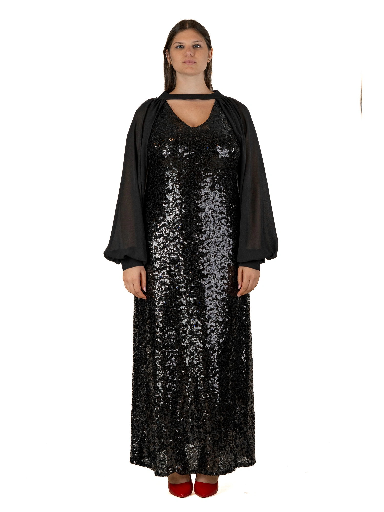 A LIGHTWEIGHT GEORGETTE SHAWL WITH AN ETHEREAL APPEAL. THE FLUENT DESIGN WITH PUFFY SLEEVES PROVIDES FLOW AND ROMANCE, WHILE THE COWL NECK DETAIL ADDS A TOUCH OF DRAMATIC ELEGANCE. PERFECT FOR COMPLETING AN EVENING LOOK WITH CLASS AND MYSTERY. THE MODEL IS 180 CM AND WEARS A SIZE I.