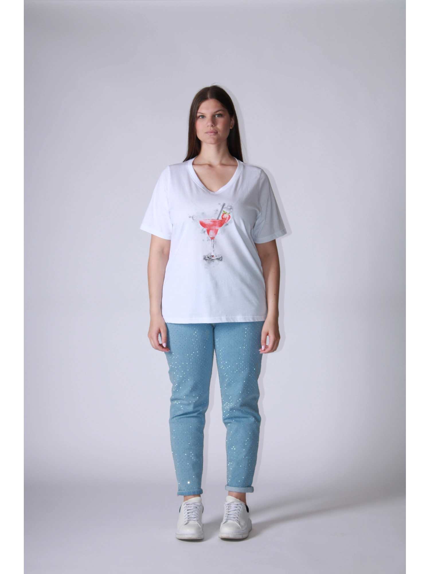 SOFT AND COMFORTABLE COTTON T-SHIRT, DESIGNED TO CONVEY A LIGHT AND PLEASANT ATMOSPHERE. THE CENTRAL GRAPHIC, INSPIRED BY THE WORLD OF FREE TIME AND RELAXATION, GIVES PERSONALITY TO THE GARMENT, MAKING IT IDEAL FOR A CASUAL, FRESH, AND CONTEMPORARY LOOK. AN EASY PROPOSAL TO INCLUDE IN THE COLLECTION, PERFECT FOR CUSTOMERS LOOKING FOR STYLE AND COMFORT AT ANY TIME OF THE DAY. THE MODEL IS 170 CM TALL AND WEARS A SIZE M.