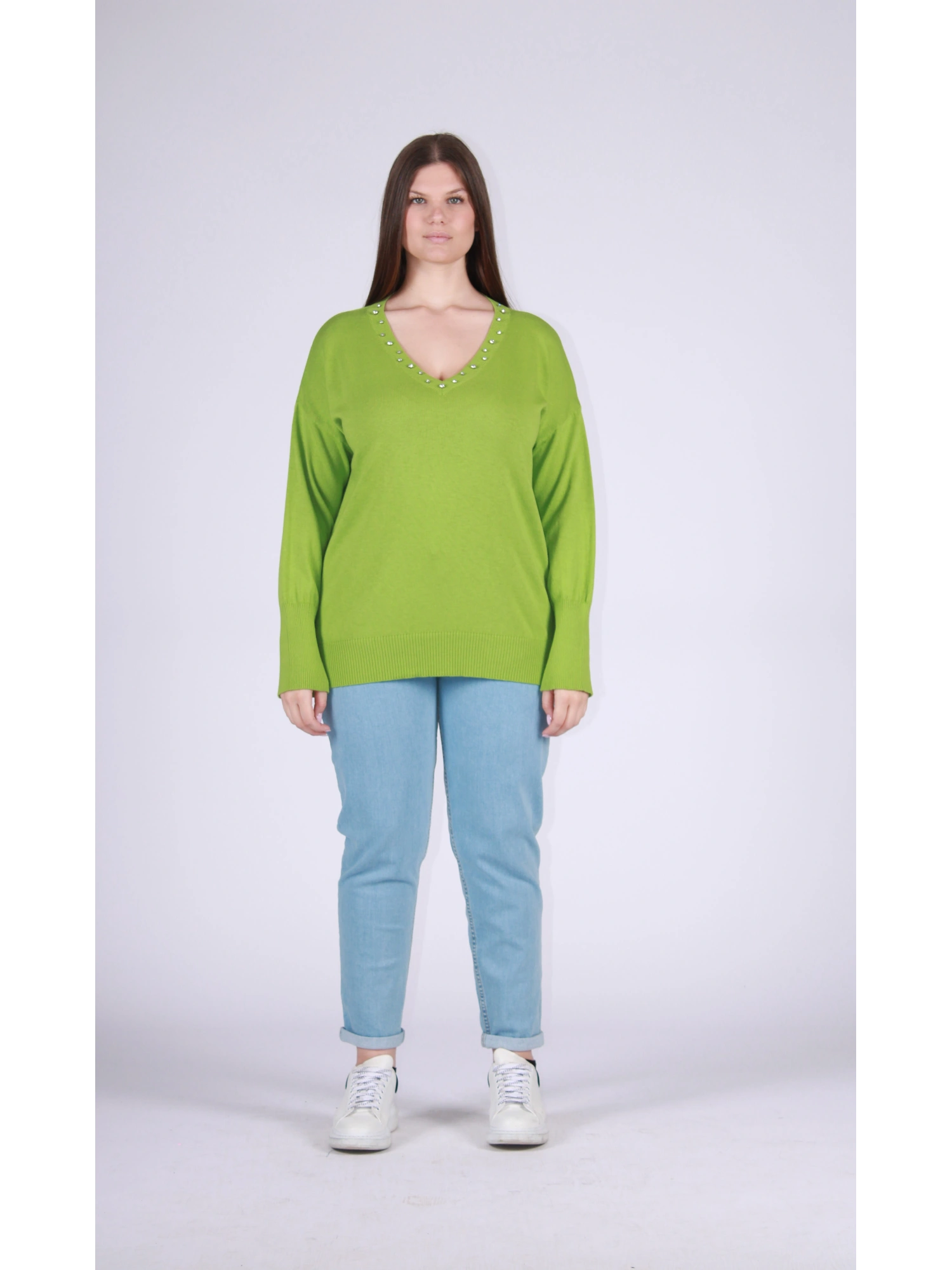 COTTON PULLOVER WITH A ESSENTIAL AND REFINED LINE, DESIGNED TO ENHANCE YOUR EVERYDAY LOOK WITH A FEMININE TOUCH. THE V-NECK IS EMBELLISHED WITH BRIGHT DETAILS THAT GIVE THE GARMENT CHARACTER WITHOUT SACRIFICIAL SIMPLICITY. THE COMFORTABLE FIT AND SOFT TOUCH MAKE IT IDEAL FOR CONTINUOUS WEAR, PERFECT FOR A B2B OFFER THAT FOCUSES ON QUALITY, STYLE, AND EASE OF SELLING. THE MODEL IS 170 CM TALL AND WEARS A SIZE I.
