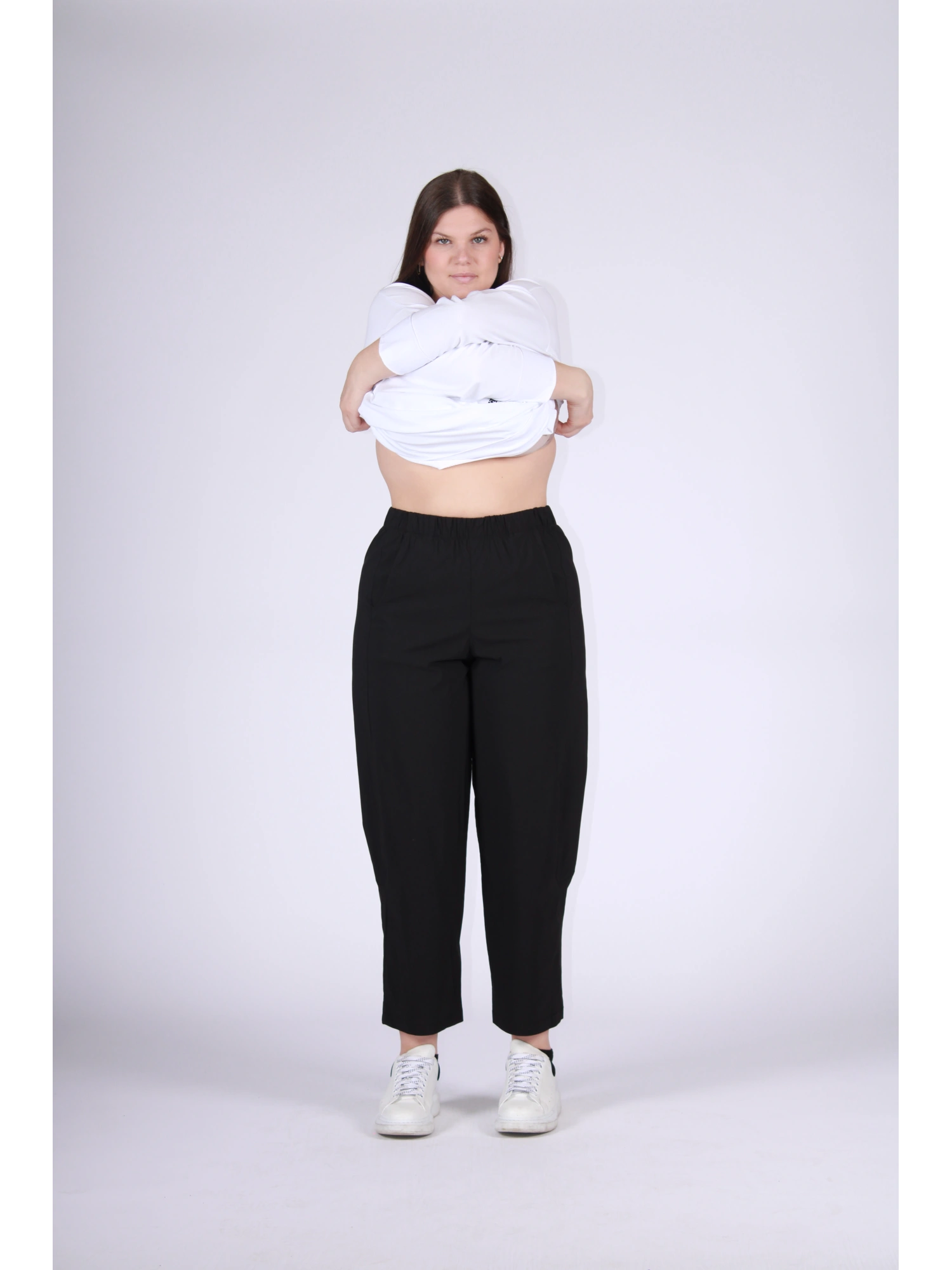 CARROT TROUSERS IN STRETCH VISCOSE WITH A CONTEMPORARY AND COMFORTABLE FIT, DESIGNED TO ACCOMPANY MOVEMENTS NATURALLY. THE LOOSE LINE AT THE HIPS AND SLIGHTLY TAPERED AT THE BOTTOM ENHANCE THE SILHOUETTE WITHOUT CONSTRAINT, OFFERING A FEELING OF FREEDOM AND WELL-BEING ALL DAY LONG. A VERSATILE PIECE, IDEAL FOR ESSENTIAL BUT CAREFREE LOOKS, PERFECT FOR WEARING AT ANY TIME WITH STYLE AND CONFIDENCE. THE MODEL IS 170 CM TALL AND WEARS A SIZE M.