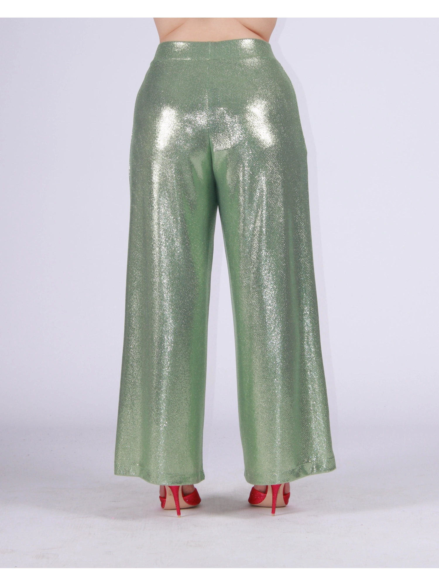 LUREX TROUSERS WITH A REFINED AND CONTEMPORARY STYLE, DESIGNED TO CREATE A COORDINATED OUTFIT WITH THE LUREX JACKET (ART. 25185). WIDE AND FLUENT LINE, WITH FRONT PLEASES THAT GIVE STRUCTURE TO THE WAIST AND SLIM THE SILHOUETTE. THE SHINY FABRIC ENHANCES MOVEMENT AND PROVIDES A SCENIC ELEGANCE, PERFECT FOR CEREMONIES AND SPECIAL EVENTS. COMFORTABLE FIT AND SOFT FIT, IDEAL FOR ENHANCED CURVES WITH STYLE AND PERSONALITY. THE MODEL IS 170 CM TALL AND WEARS A SIZE M.