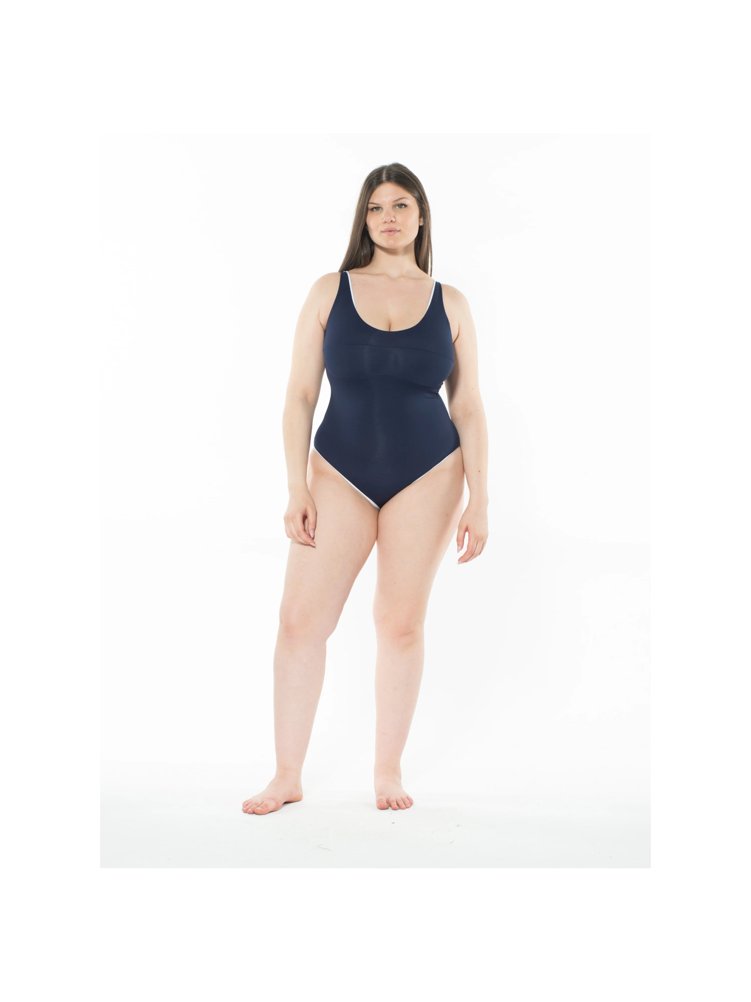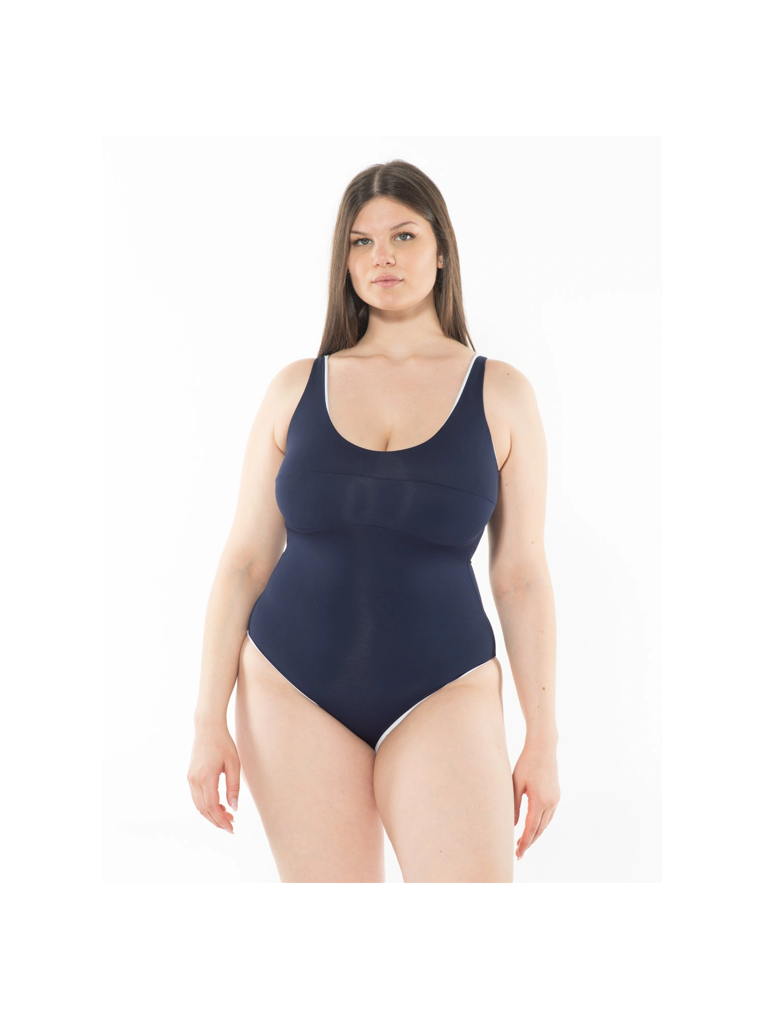Questo costume intero doppiato è progettato per offrire comfort e supporto senza rinunciare allo stile. La silhouette liscia e la scollatura moderata esaltano la figura con eleganza, rendendo questo costume adatto sia per una giornata in spiaggia che per qualche vasca in piscina. Il tessuto di alta qualità assicura durata e una vestibilità ottimale, mantenendo la forma anche dopo frequenti usi. La modella, alta 170 cm, indossa una taglia II, dimostrando come il costume avvolga delicatamente il corpo, garantendo copertura e sicurezza. Un must-have per chi cerca un capo balneare classico con un tocco di raffinatezza.