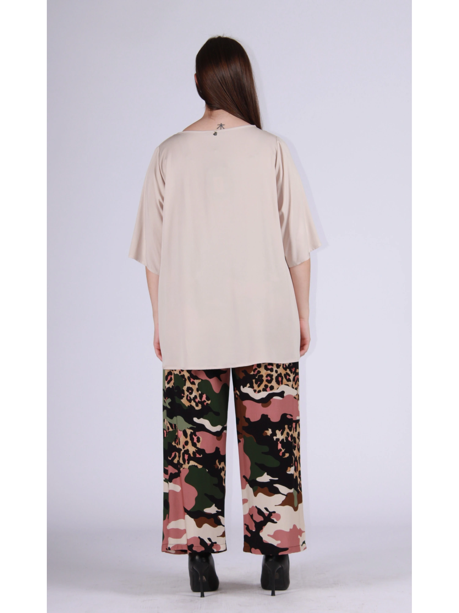 BLUSA IN 100% VISCOSA, MORBIDA E FLUIDA, CON UNA VESTIBILITÀ AMPIA E SCIVOLATA CHE ACCAREZZA LE FORME SENZA SEGNARE. SCOLLO TONDO ESSENZIALE E MANICA AL GOMITO PER UN FIT CONFORTEVOLE E VERSATILE.