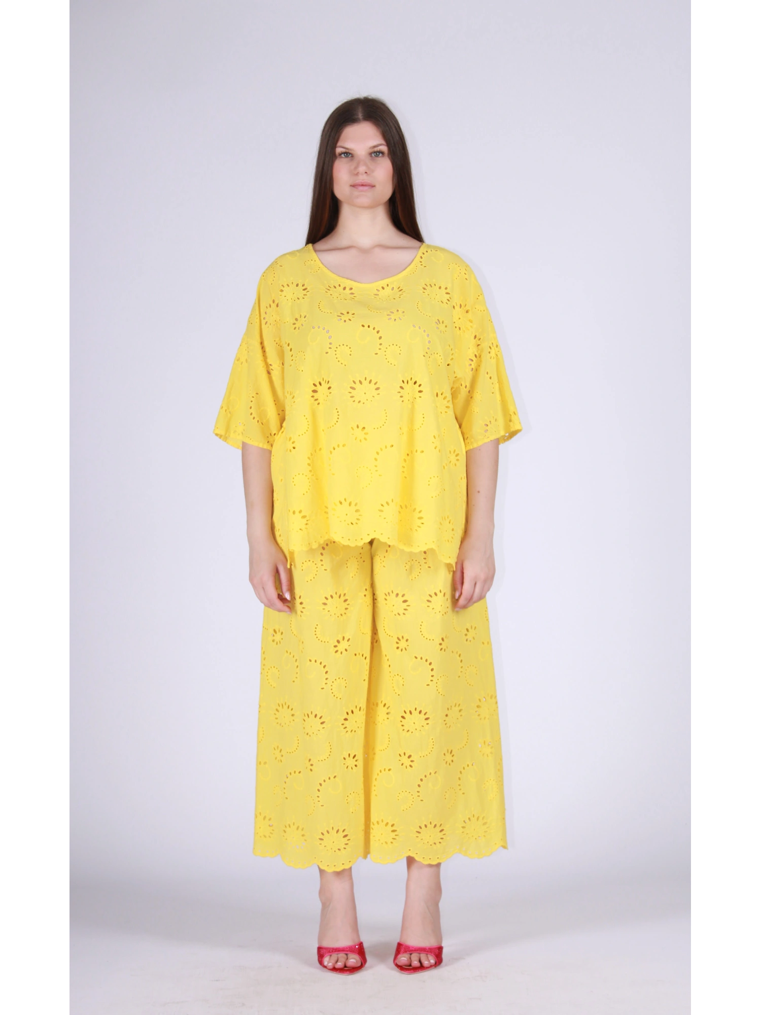 BLUSA IN SAN GALLO 100% COTONE DALLO STILE FRESCO E RAFFINATO, PERFETTA PER VALORIZZARE LA SILHOUETTE CON LEGGEREZZA E FEMMINILITÀ.