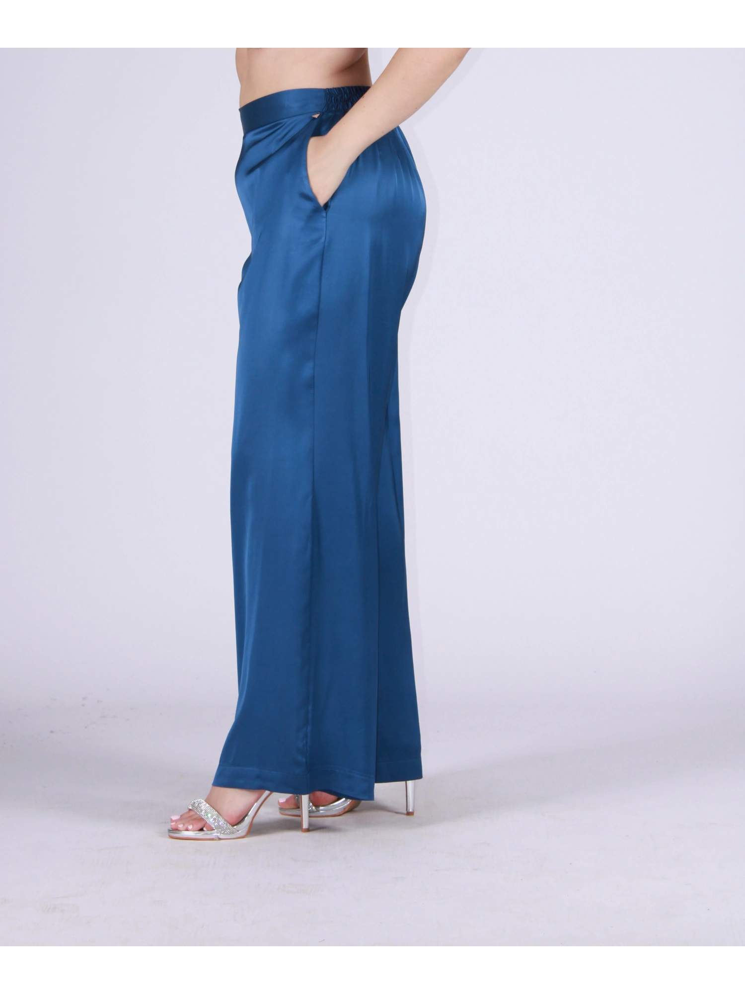 PANTALONE IN RASO 100% VISCOSA DALL’ASPETTO LUMINOSO E RAFFINATO. LINEA DRITTA E MORBIDA CHE SCENDE FLUIDA LUNGO LA GAMBA, VALORIZZANDO LA SILHOUETTE CON ELEGANZA E LEGGEREZZA. FASCIA IN VITA PULITA CHE DEFINISCE IL PUNTO VITA E DONA UN FIT ORDINATO E FEMMINILE. IL TESSUTO IN RASO, SETOSO E SCIVOLATO, REGALA MOVIMENTO E UNA LUCENTEZZA SOFISTICATA, IDEALE PER LOOK COORDINATI O ABBINAMENTI PIÙ CASUAL-CHIC. PERFETTO SIA PER OCCASIONI SPECIALI CHE PER OUTFIT DA GIORNO RICERCATI.