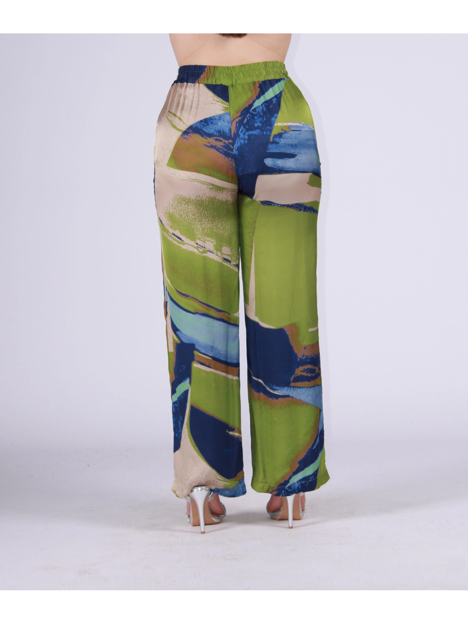 PANTALONE MODELLO PALAZZO IN 100% VISCOSA, LEGGERO E FLUIDO, PERFETTO PER GARANTIRE COMFORT E MOVIMENTO. LINEA AMPIA E DRITTA CHE SCENDE MORBIDA LUNGO LA GAMBA, VALORIZZANDO LA SILHOUETTE SENZA SEGNARE. VITA CON ELASTICO CHE ASSICURA UNA VESTIBILITÀ PRATICA E ADATTABILE, IDEALE PER UN UTILIZZO QUOTIDIANO. TESSUTO FRESCO E TRASPIRANTE, PIACEVOLE A CONTATTO CON LA PELLE E ADATTO ALLA STAGIONE PRIMAVERILE ED ESTIVA. PERFETTO IN ABBINAMENTO ALLA CASACCA COORDINATA PER UN TOTAL LOOK DI FORTE IMPATTO VISIVO, MA FACILMENTE INTERPRETABILE ANCHE CON CAPI BASICI.