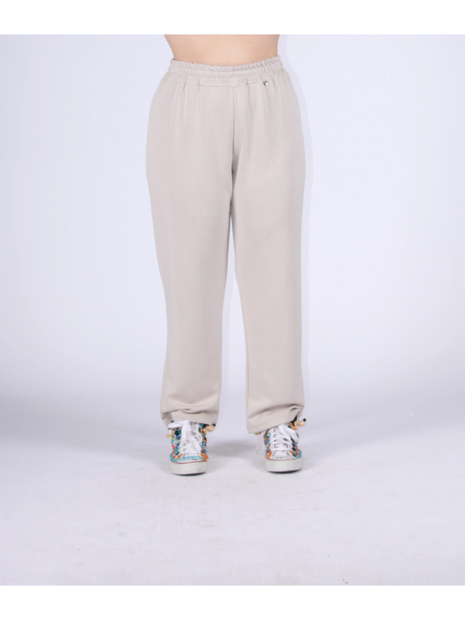 PANTALONE TUTA IN TESSUTO MORBIDO E CONFORTEVOLE, PENSATO PER GARANTIRE MASSIMA LIBERTÀ DI MOVIMENTO SENZA RINUNCIARE A UNO STILE CURATO. IL MODELLO PRESENTA VITA ELASTICIZZATA CHE ASSICURA UNA VESTIBILITÀ PRATICA E ADATTABILE, MENTRE LA LINEA DRITTA SCENDE FLUIDA SULLA GAMBA VALORIZZANDO LA SILHOUETTE. PERFETTO DA ABBINARE ALLA GIACCA COORDINATA O A MAGLIE BASIC PER UN LOOK SPORTIVO-CHIC IDEALE PER IL TEMPO LIBERO E I MOMENTI DI RELAX.