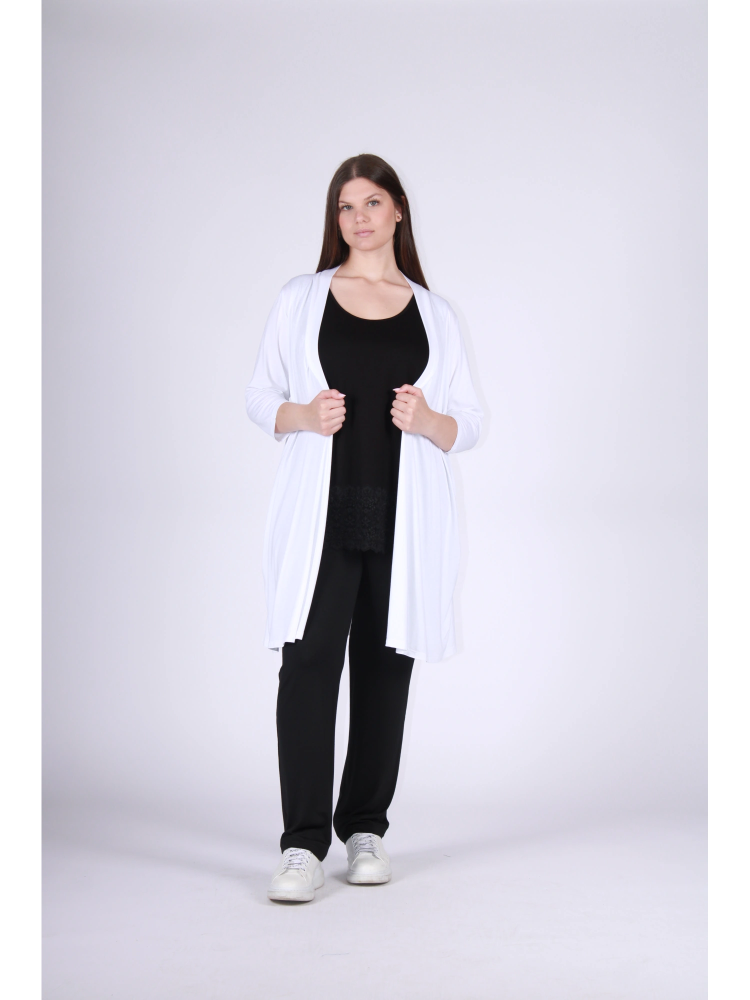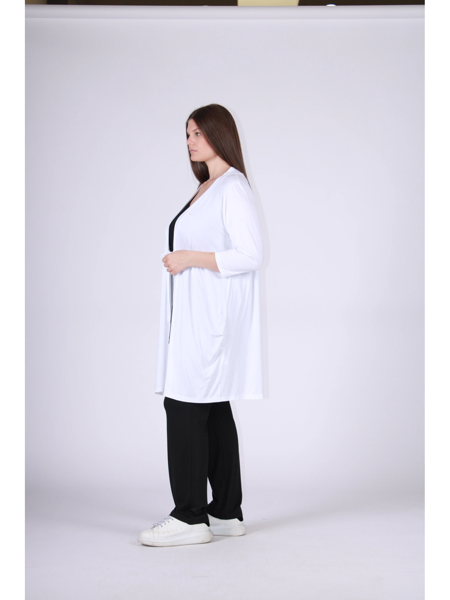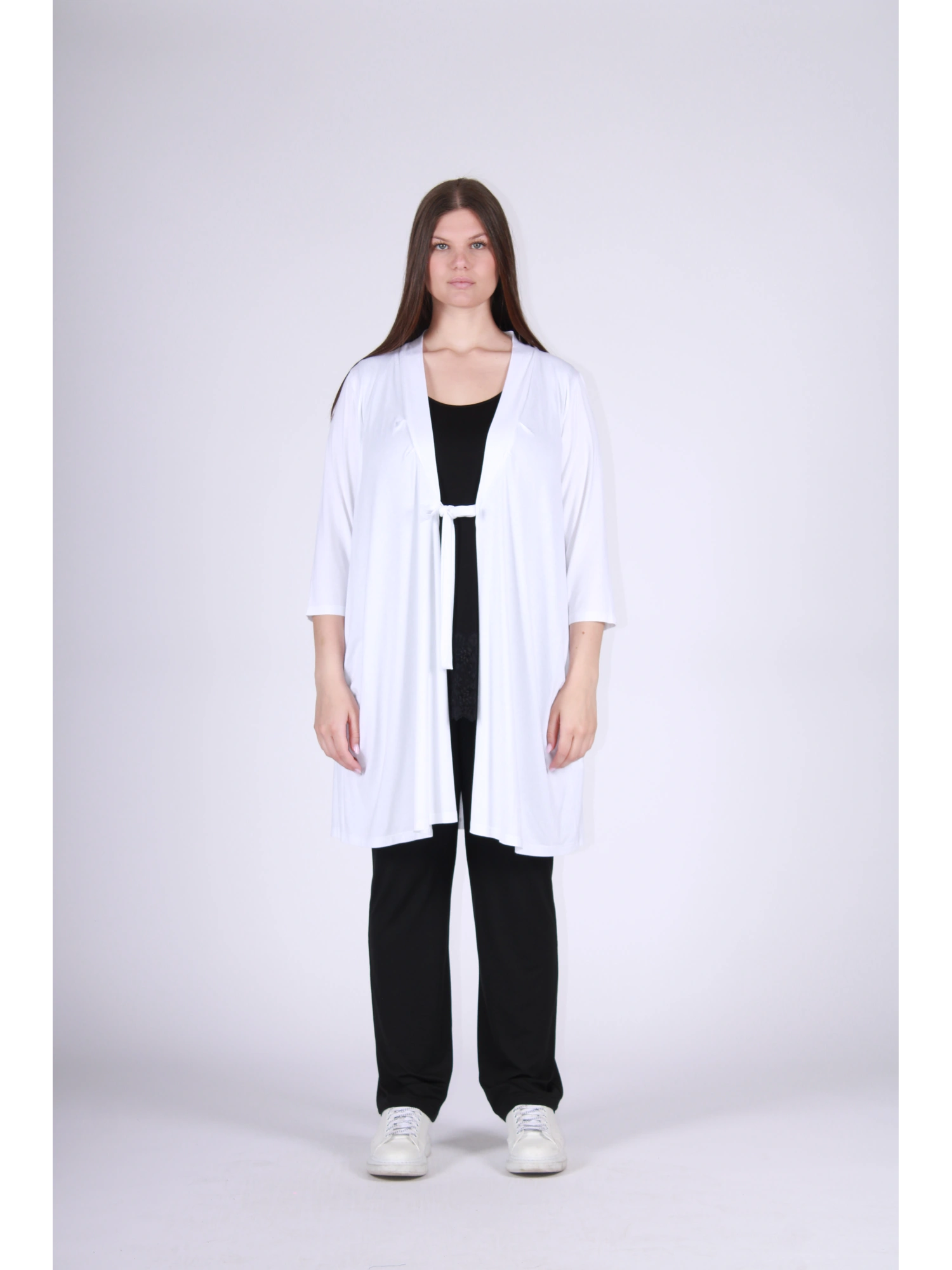 CARDIGAN IN JERSEY DI VISCOSA ELASTICIZZATA DALLA LINEA FLUIDA E FEMMINILE, PENSATO PER AVVOLGERE LA SILHOUETTE CON LEGGEREZZA E MOVIMENTO. IL TAGLIO APERTO SUL DAVANTI, ARRICCHITO DA UN DELICATO LACCIO IN VITA, CREA UN’ELEGANZA NATURALE E VERSATILE, PERFETTA PER COMPLETARE O STRATIFICARE QUALSIASI LOOK. LA VESTIBILITÀ MORBIDA E CONFORTEVOLE LO RENDE UN CAPO CHIAVE PER IL GUARDAROBA CONTEMPORANEO, IDEALE PER UN’OFFERTA B2B ATTENTA ALLA PRATICITÀ SENZA RINUNCIARE ALLO STILE. UN CARDIGAN CHE AGGIUNGE LUMINOSITÀ, ARMONIA E PERSONALITÀ A OGNI OUTFIT.