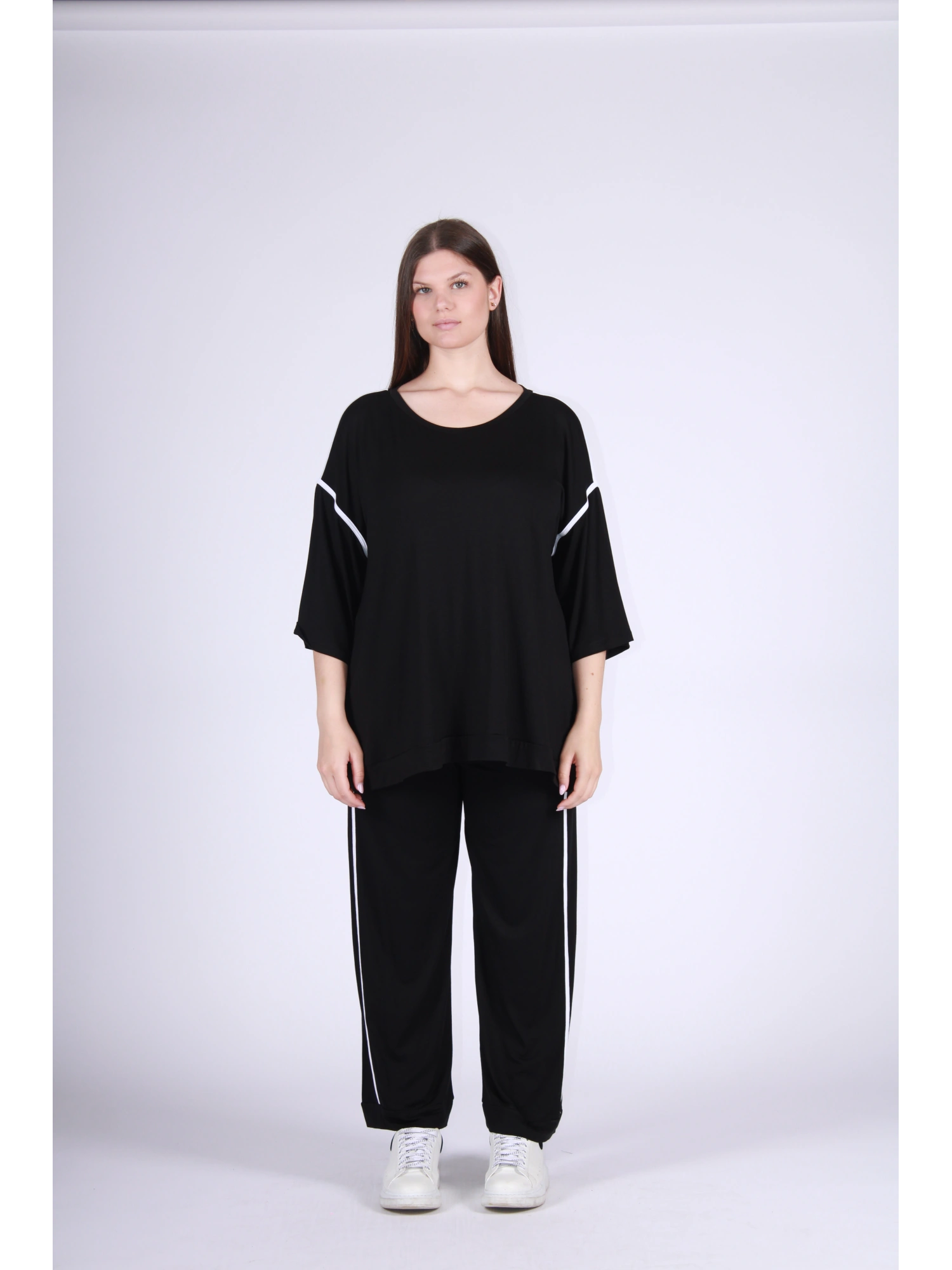 MAGLIA IN VISCOSA STRETCH DALLO STILE ESSENZIALE E CONTEMPORANEO, PENSATA PER OFFRIRE MASSIMO COMFORT E UNA VESTIBILITÀ FLUIDA CHE ACCOMPAGNA LE FORME CON NATURALE ELEGANZA. IL DESIGN PULITO È VALORIZZATO DA DETTAGLI GRAFICI A CONTRASTO SULLE MANICHE, CHE DONANO UN TOCCO MODERNO E DINAMICO AL CAPO. MORBIDA, LEGGERA E PIACEVOLE SULLA PELLE, È UNA MAGLIA VERSATILE, PERFETTA PER LOOK CASUAL-CHIC E FACILE DA INSERIRE IN UN’OFFERTA B2B ATTENTA A STILE, COMFORT E CONTEMPORANEITÀ.