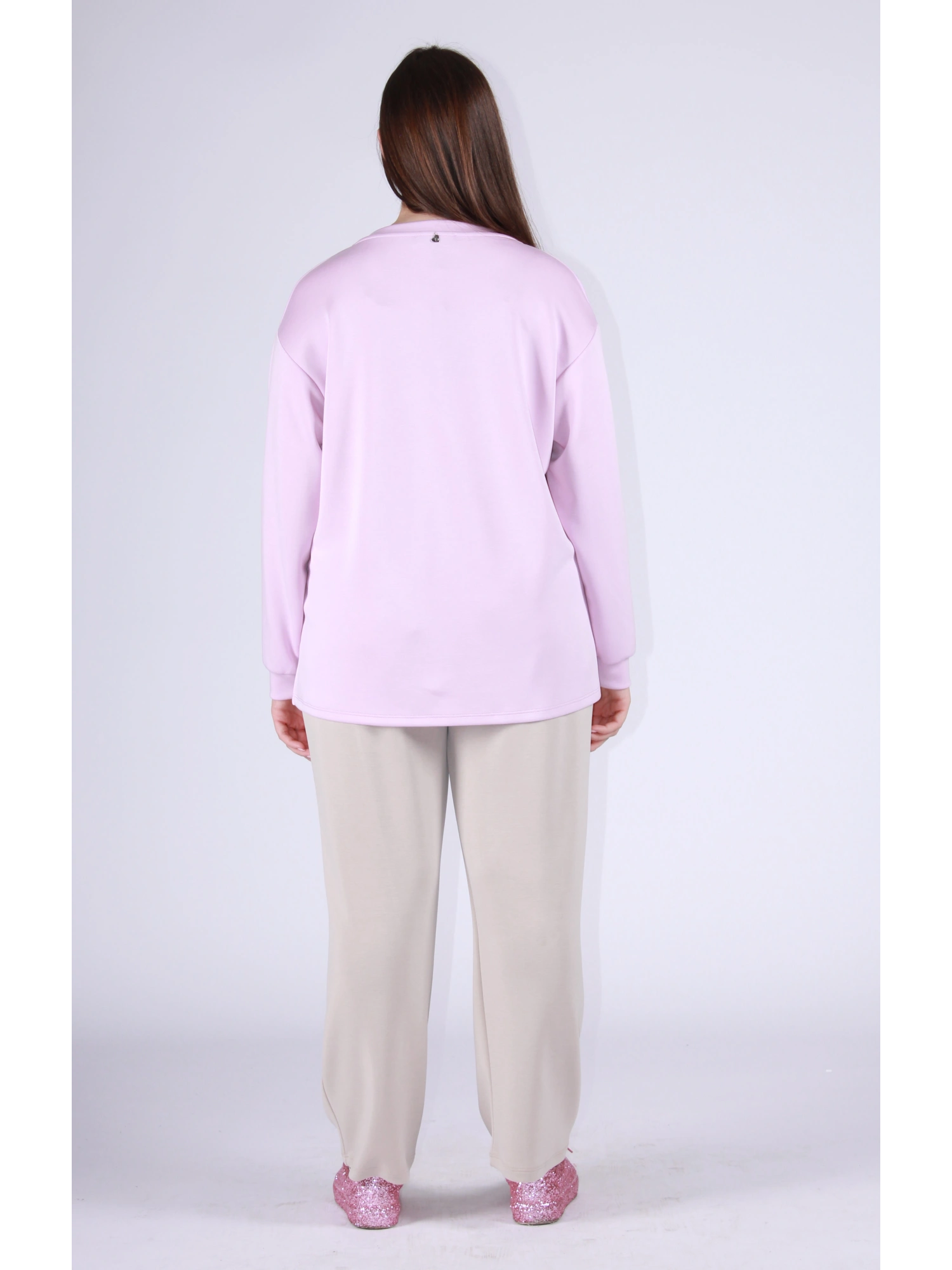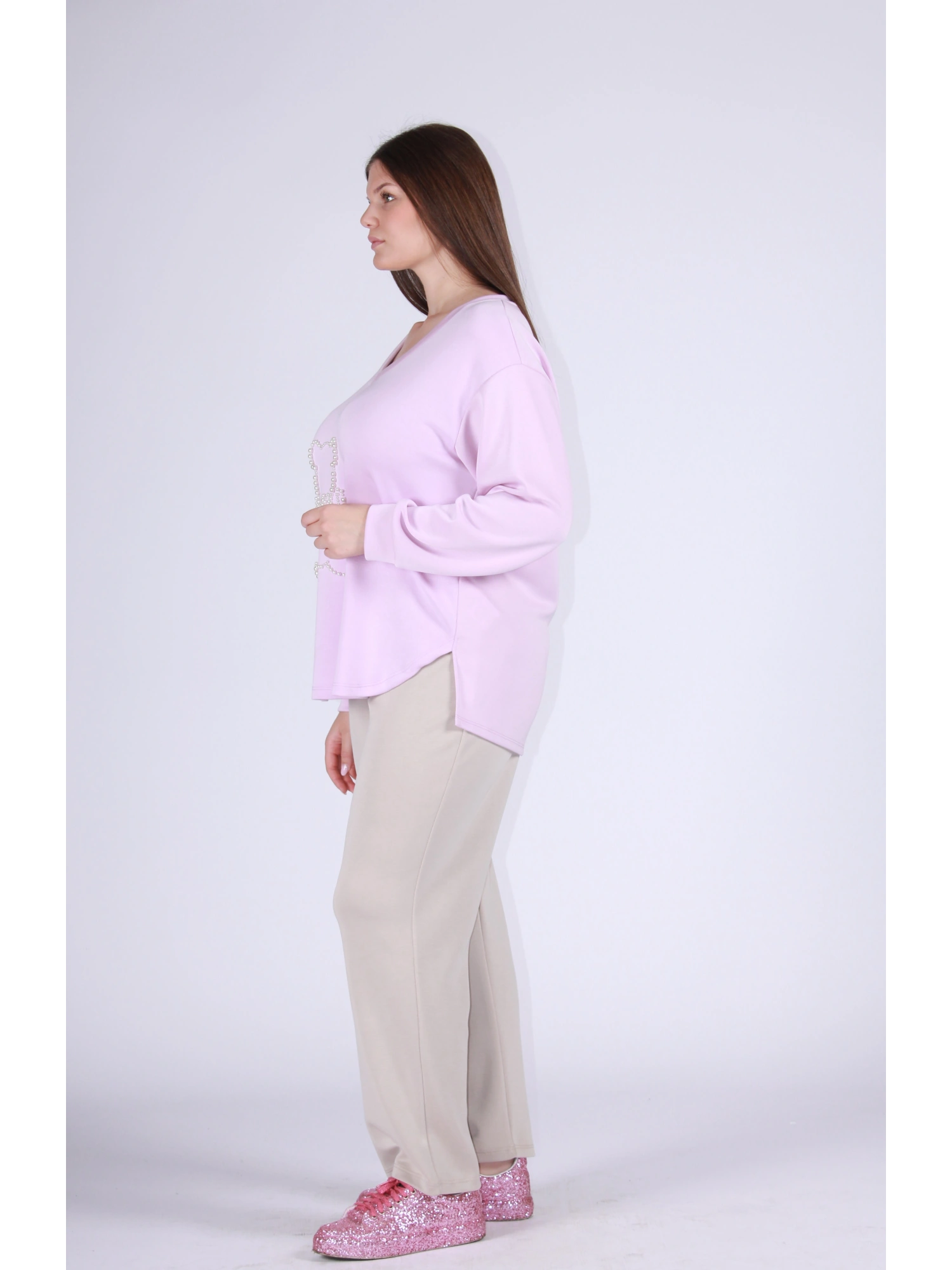MAGLIA A MANICA LUNGA DAL TAGLIO MORBIDO E CONFORTEVOLE, REALIZZATA IN TESSUTO FLUIDO CHE ACCAREZZA LA SILHOUETTE SENZA COSTRINGERE. LO SCOLLO A V DONA SLANCIO ALLA FIGURA, MENTRE IL DELICATO MOTIVO ORSETTO FRONTALE IMPREZIOSITO DA APPLICAZIONI LUMINOSE AGGIUNGE UN TOCCO FEMMINILE E RICERCATO. PERFETTA PER LOOK CASUAL CHIC, DA ABBINARE A PANTALONI MORBIDI O DENIM PER UNO STILE CURATO E CONTEMPORANEO.