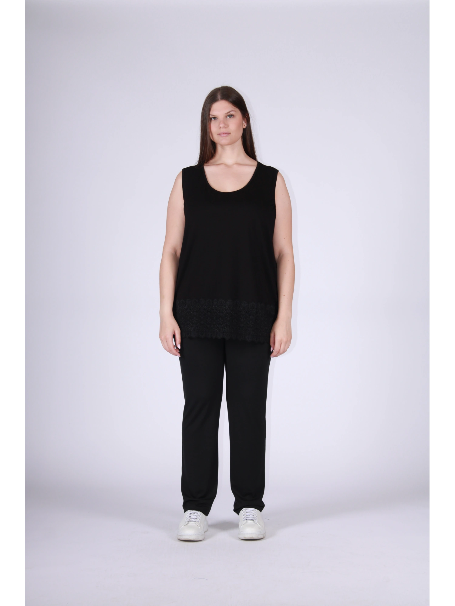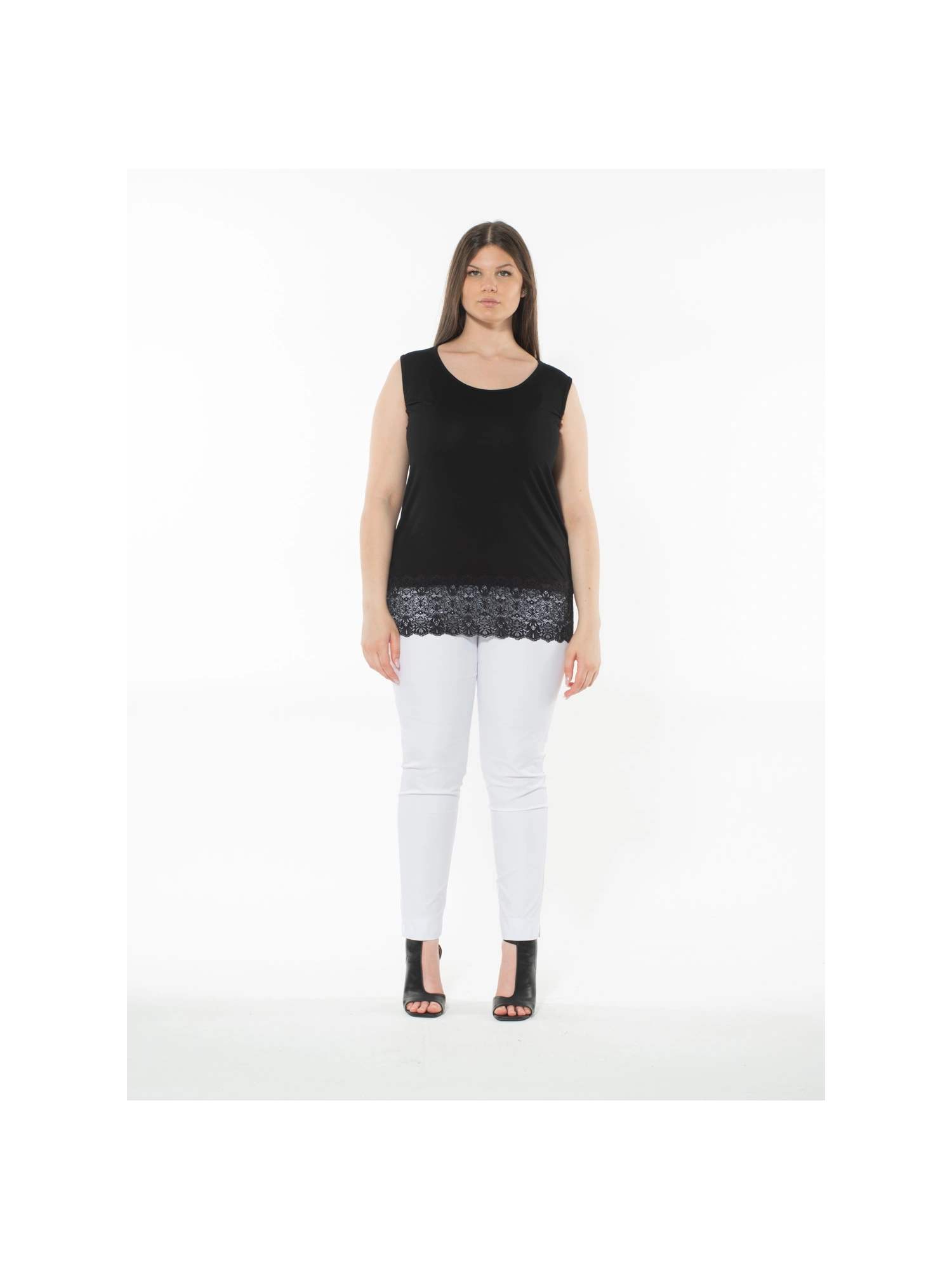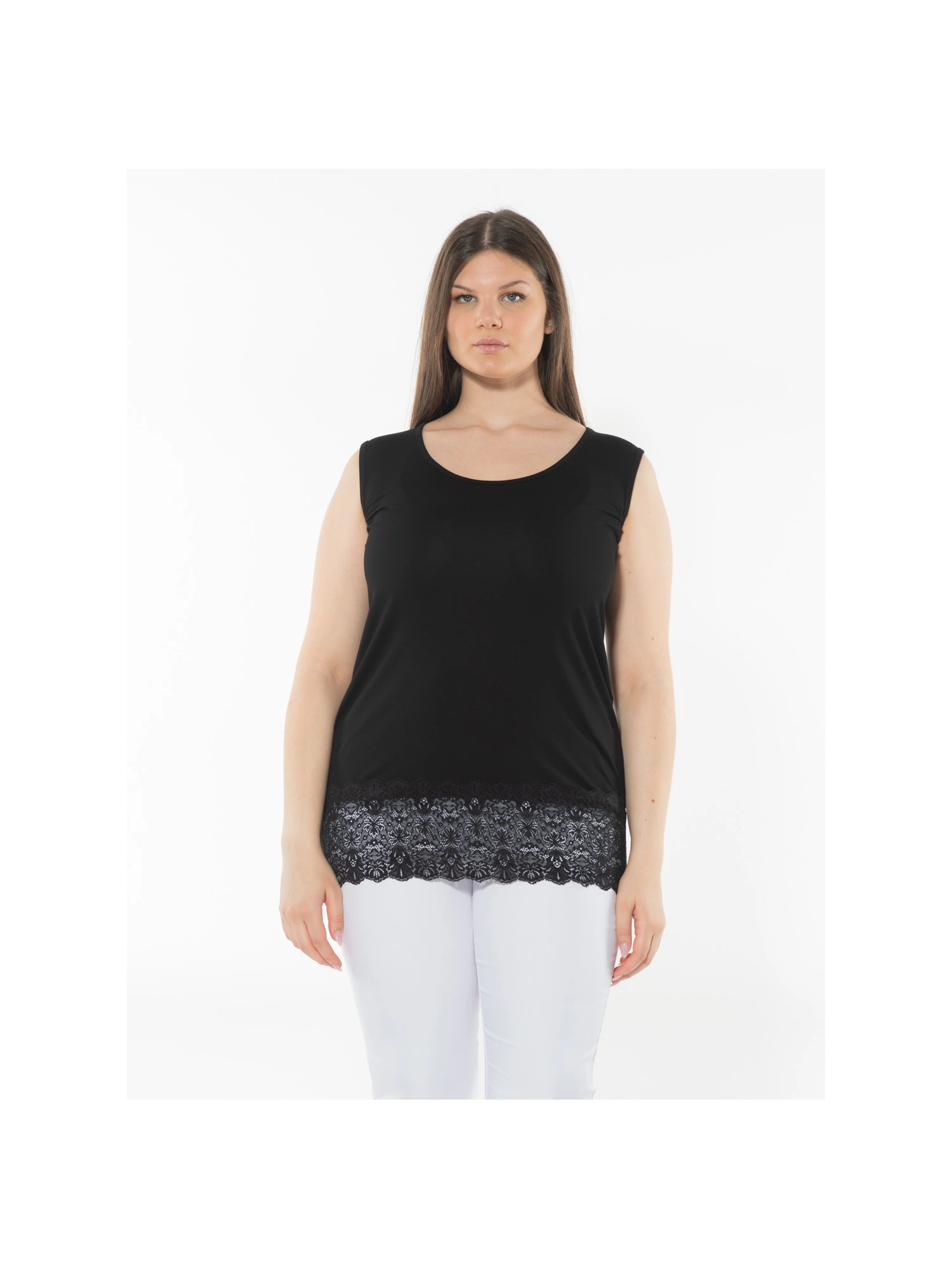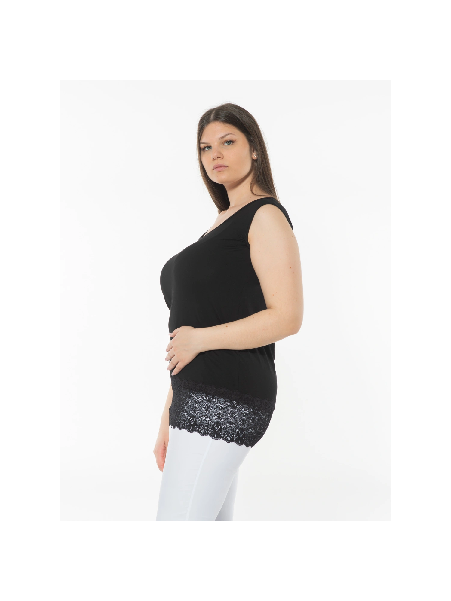 Canotta con pizzo alto 15cm ,Spalla larga in viscosa elasticizzata.